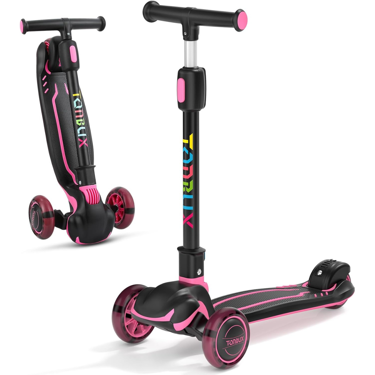 TONBUX Kids Scooter Light Up 3 Wheel Kick Scooters for Kids 3-5 Folding Scooters for Kids 8-12
